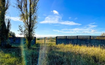 Teren działki jest niezagospodarowany, ogrodzony płotem z przęseł betonowych, zamontowana została dwuskrzydłowa, stalowa brama.