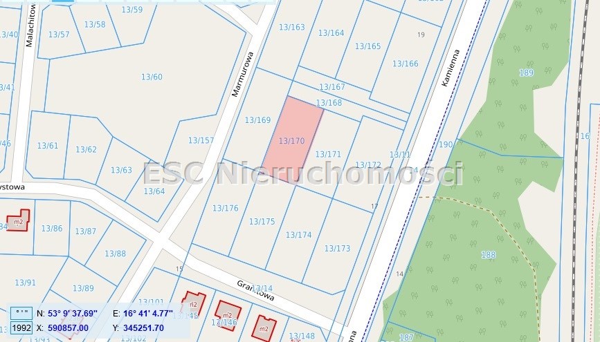 Działka ma regularny kształt prostokąta i położona jest w atrakcyjnym miejscu, na tworzącym się osiedlu nowoczesnych domów.