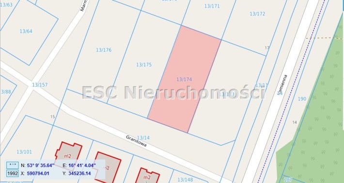 Działka ma regularny kształt prostokąta i położona jest w atrakcyjnym miejscu, na tworzącym się osiedlu nowoczesnych domów.