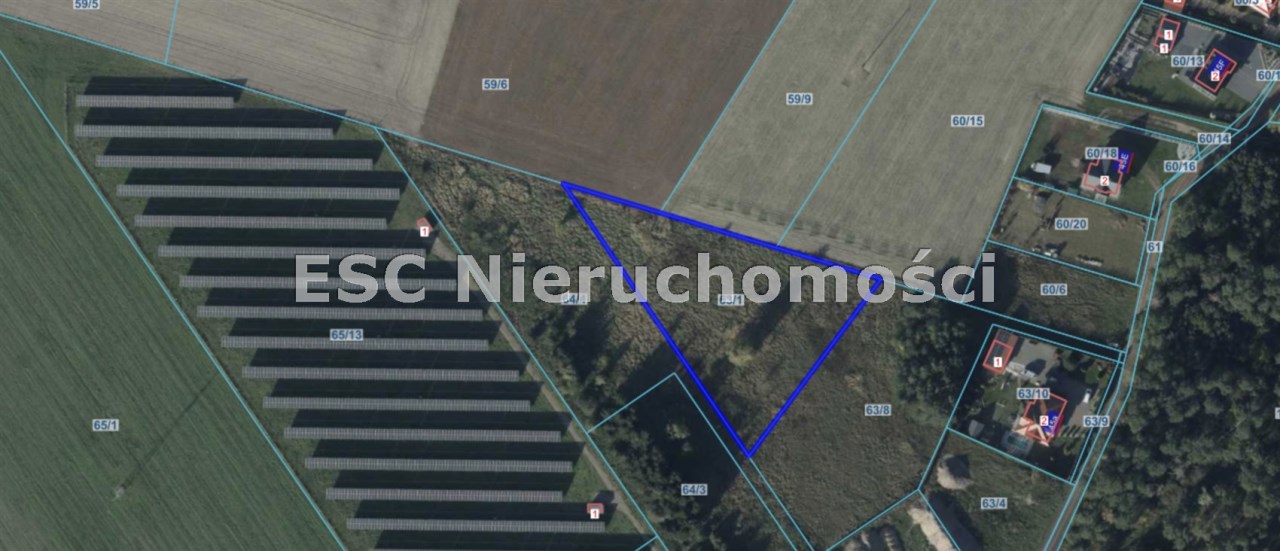 Działka w kształcie trójkąta o orientacyjnych wymiarach 117 m x 117 m x 78 m, co daje wiele możliwości zagospodarowania terenu. Teren jest niezabudowany, nieogrodzony, z bezpośrednim dostępem do drogi gruntowej publicznej.