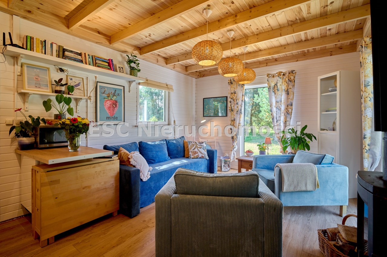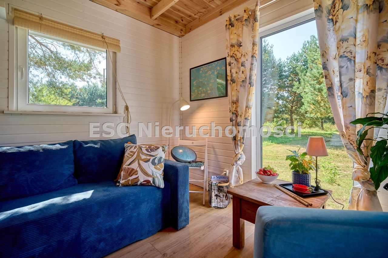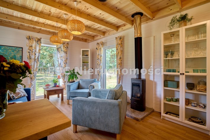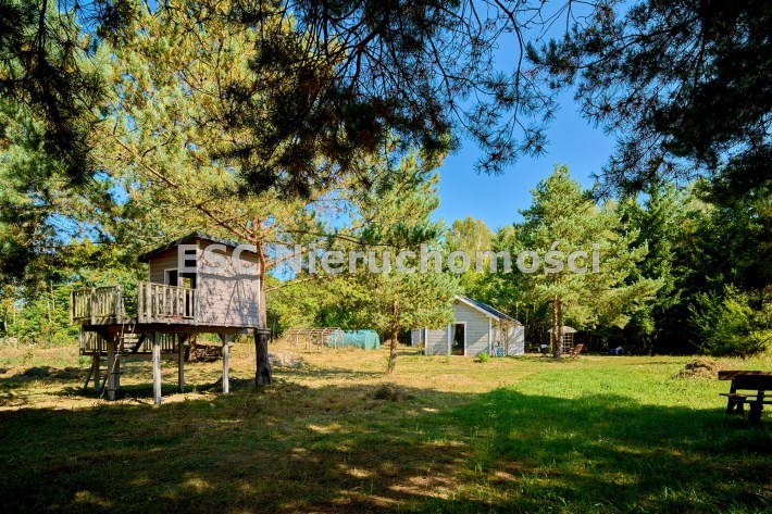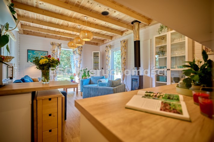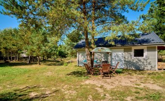 Wybudowany w technologii szkieletowej (ok. 5 letni). W tym rekreacyjnym domku wyodrębniono salon, gabinet/pokój dziecięcy oraz łazienkę z wc. Do domku przylegają 2 wiaty o łącznej pow. ok 30 m2. To idealne miejsce na rozwój przedsiębiorczości, stworzenie małego warsztatu lub dodatkowa przestrzeń do wypoczynku.