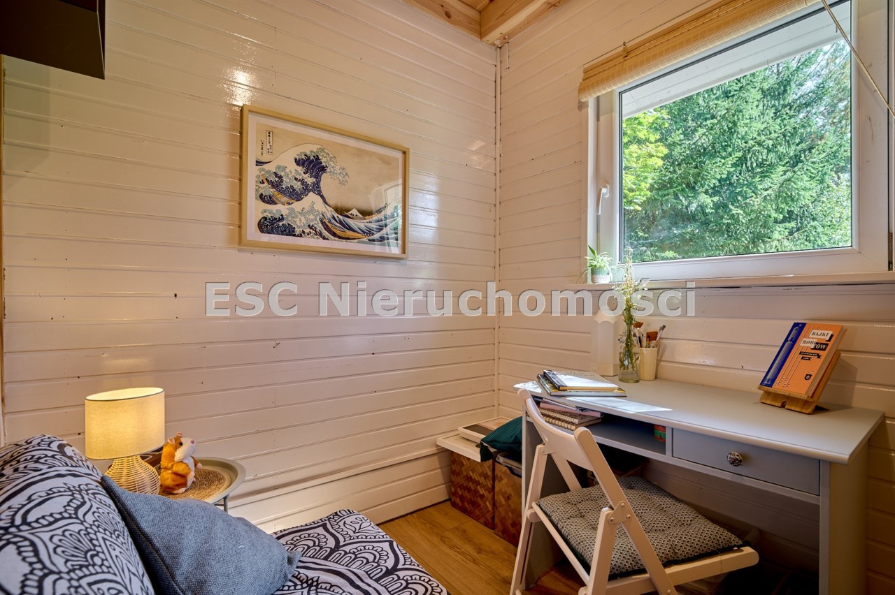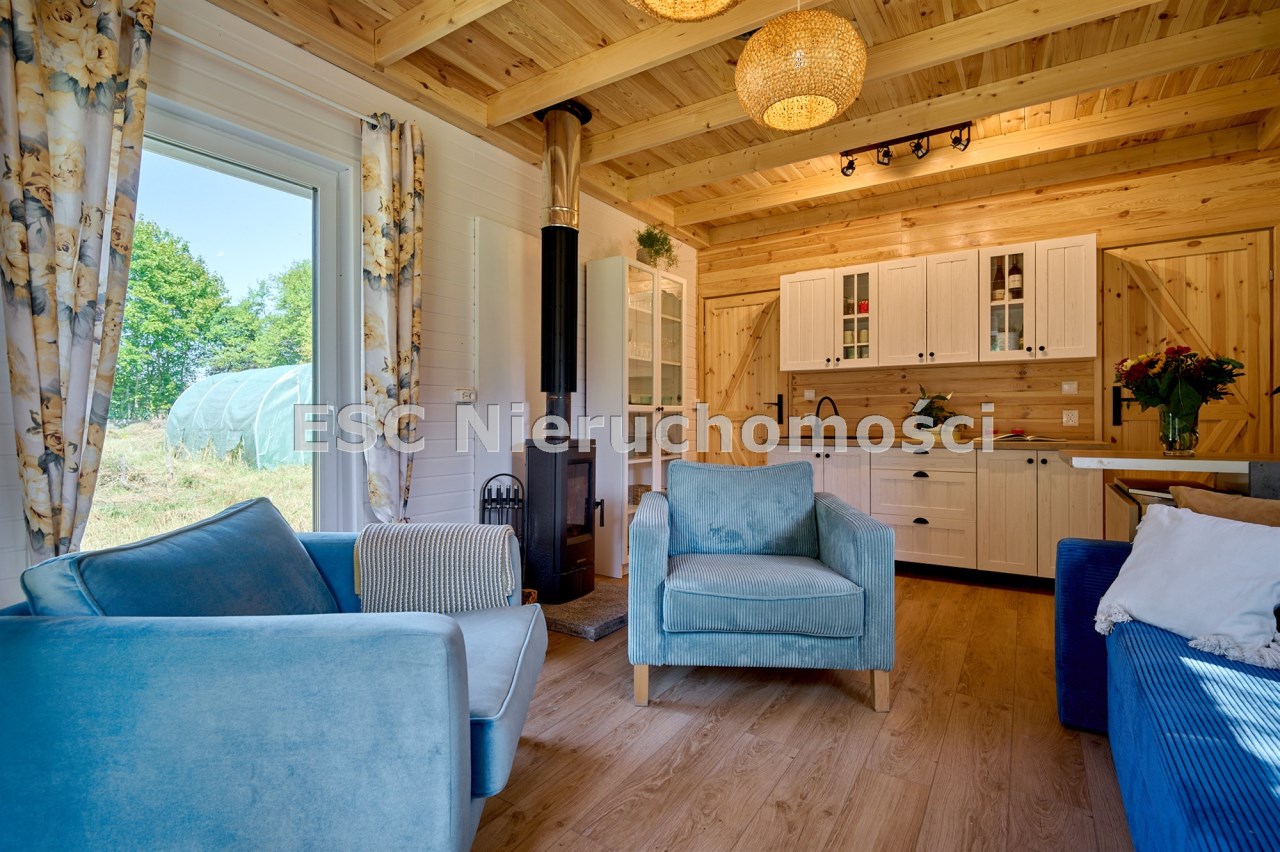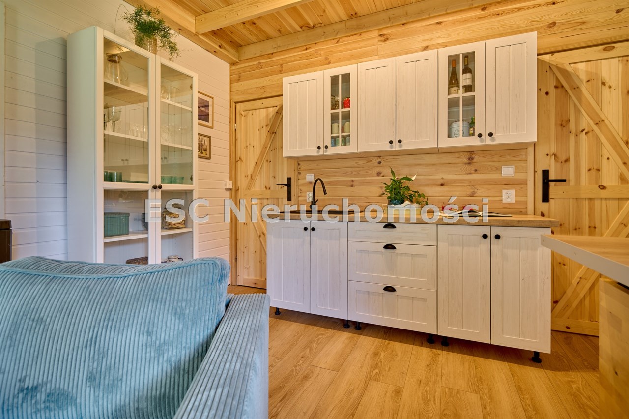 Wybudowany w technologii szkieletowej (ok. 5 letni). W tym rekreacyjnym domku wyodrębniono salon, gabinet/pokój dziecięcy oraz łazienkę z wc. Do domku przylegają 2 wiaty o łącznej pow. ok 30 m2. To idealne miejsce na rozwój przedsiębiorczości, stworzenie małego warsztatu lub dodatkowa przestrzeń do wypoczynku.