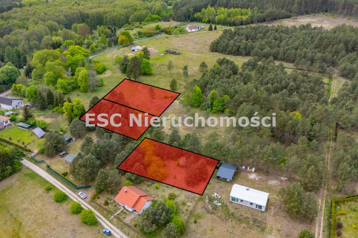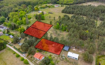 Działki położone w miejscowości otoczonej lasem w pobliżu rzeki Piława, na której urządzane są spływy kajakowe.