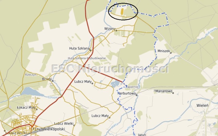 Działka zlokalizowana jest w miejscowości Wizany w odległości ok. 8km od Krzyża Wielkopolskiego.