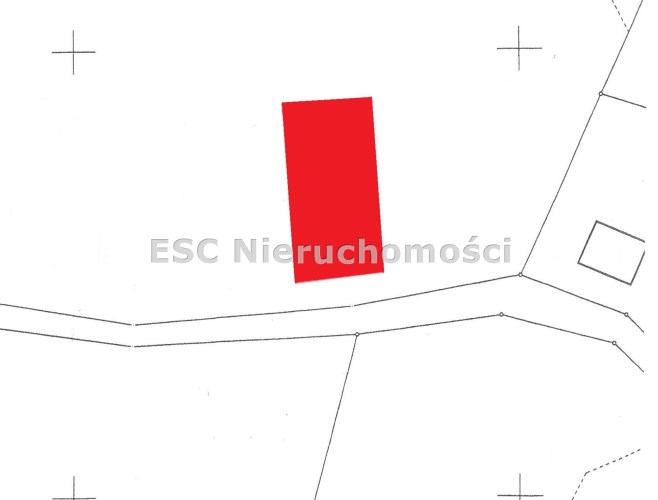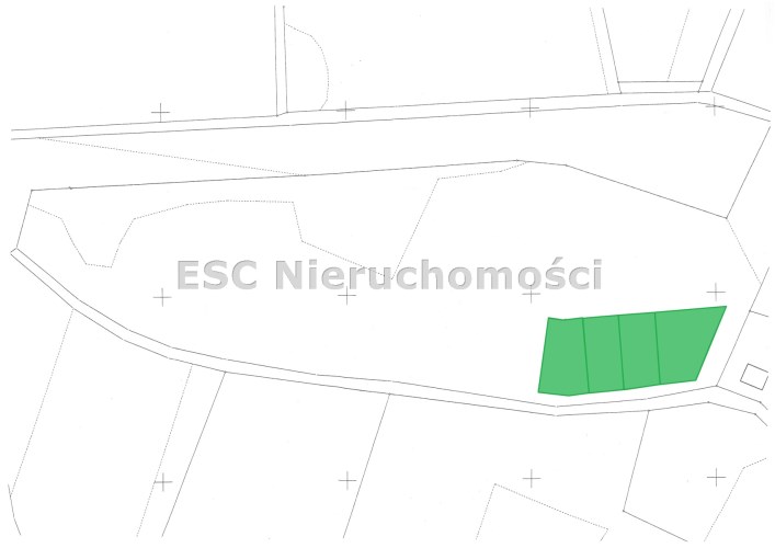 Działka o kształcie prostokąta o powierzchni ok. 800 m2 z dostępem do drogi.