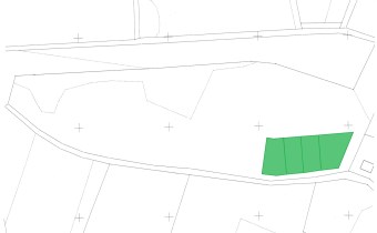 Działka o kształcie prostokąta o powierzchni ok. 800 m2 z dostępem do drogi.