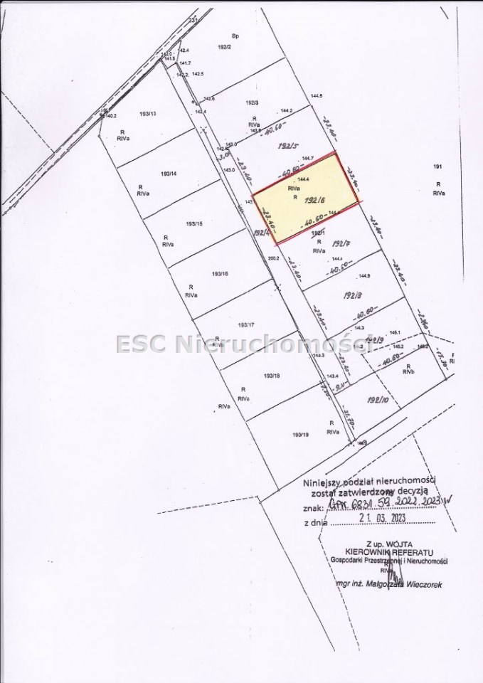 Działka o powierzchni 950m2, położona na nowo tworzonym osiedlu domków jednorodzinnych.