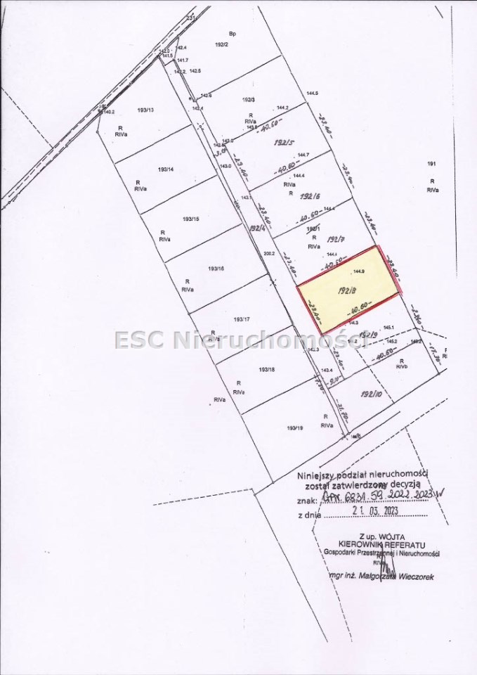 Działka o powierzchni 950m2, położona na nowo tworzonym osiedlu domków jednorodzinnych.