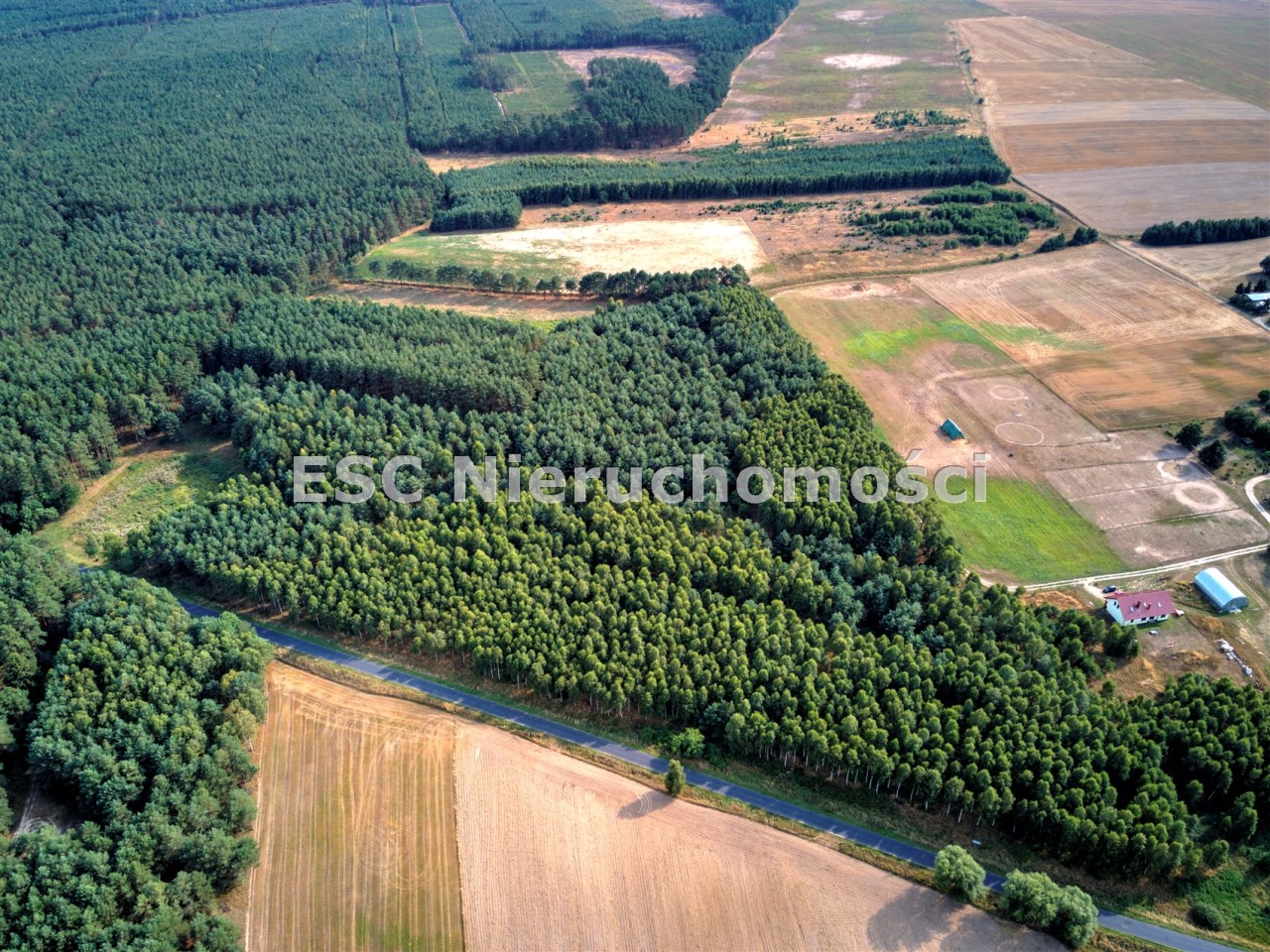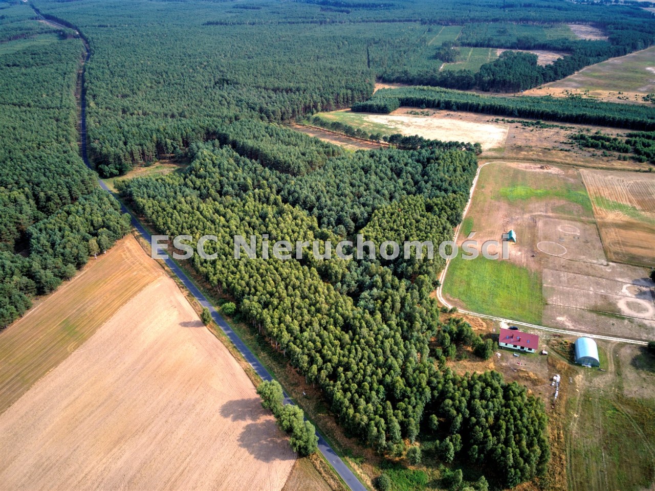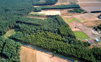 Teren działek jest całkowicie zadrzewiony.
