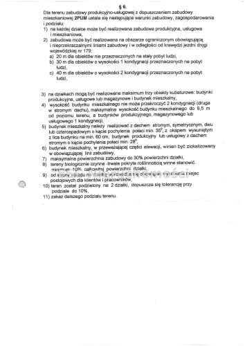 Teren objęty jest aktualnym planem zagospodarowania przestrzennego - teren zabudowy produkcyjno-usługowej z dopuszczeniem zabudowy mieszkaniowej.