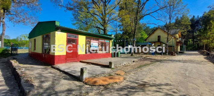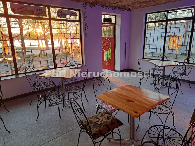 Na działce stoi charakterystyczny budynek – przez lata znany lokalnie jako „Szklanka” – z ogromnymi przeszkleniami i niepowtarzalnym klimatem.