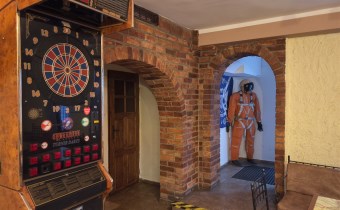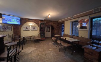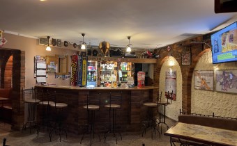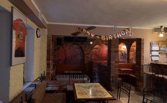 W lokalu na podłodze płytki, ściany murowane z elementami dekoracyjnymi