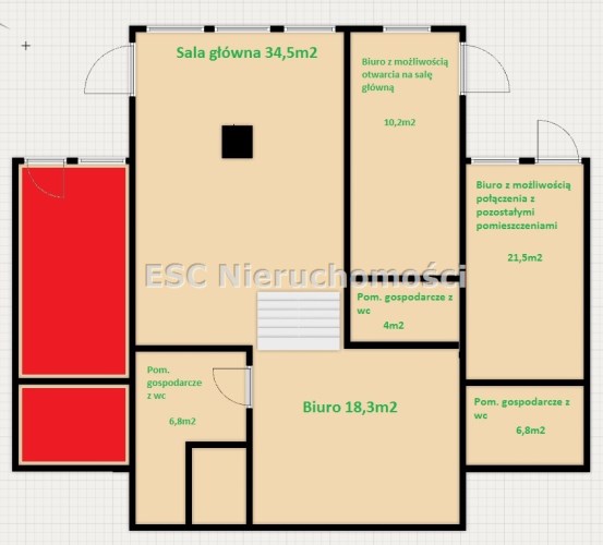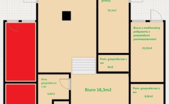 Możliwość powiększenia: dostępne są dodatkowe pomieszczenia o powierzchni 14,2m² oraz 28,3m² o które można powiększyć najmowany lokal. Wynajęcie dodatkowych pomieszczeń w drodze indywidualnych uzgodnień.