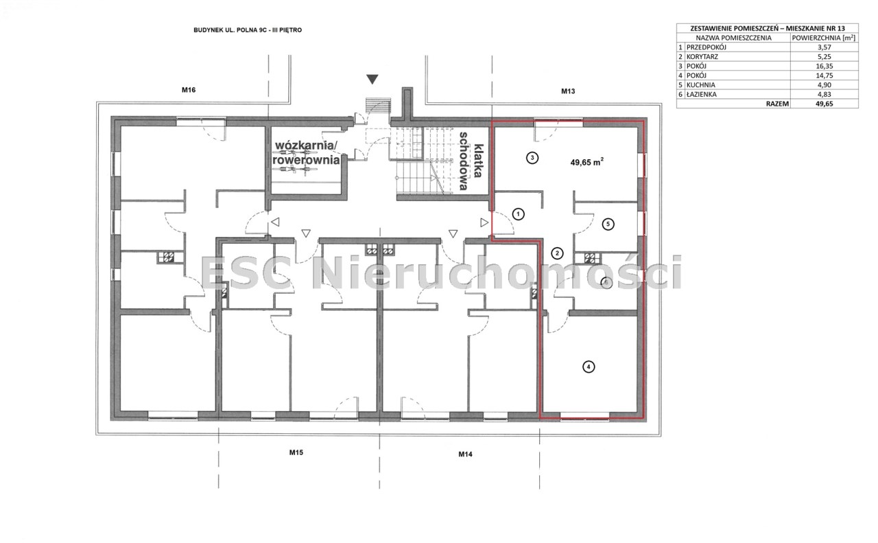 Powierzchnia lokalu mieszkalnego wynosi 49,65 m2, w skład którego wchodzi: