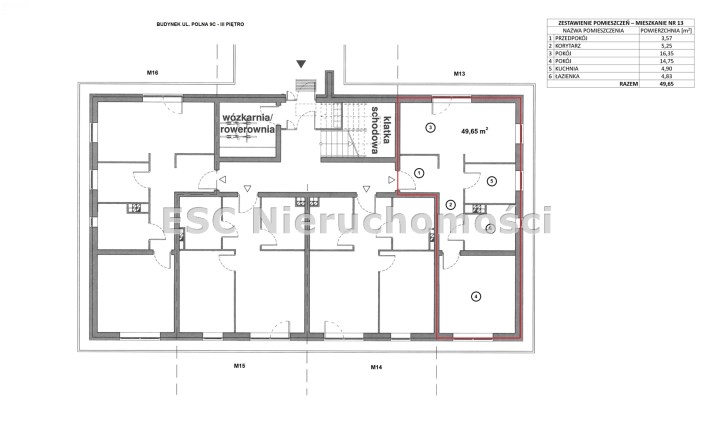 Do mieszkania przynależy wspólna komórka lokatorska dla 4 mieszkań na danej kondygnacji o powierzchni