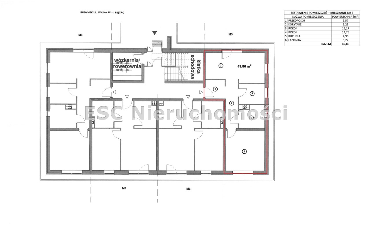 Powierzchnia lokalu mieszkalnego wynosi 49,86 m2, w skład którego wchodzi: