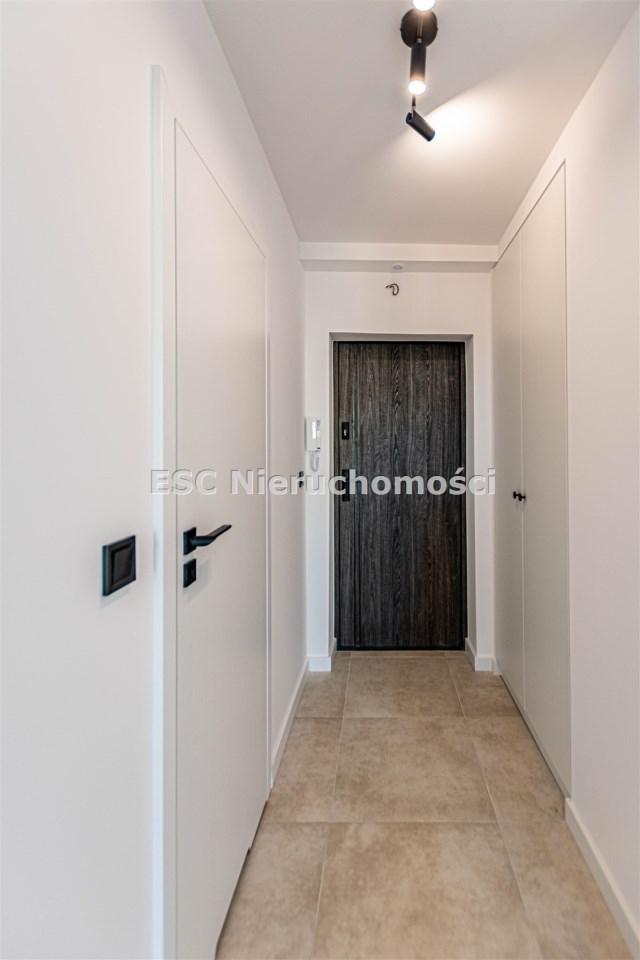 Nowoczesne drzwi wewnętrzne oraz punkty świetlne w całym mieszkaniu.