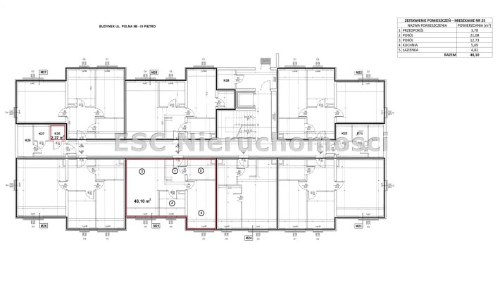 Powierzchnia lokalu mieszkalnego wynosi 48,10 m2, w skład którego wchodzi: