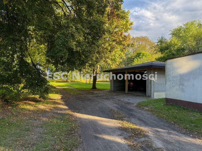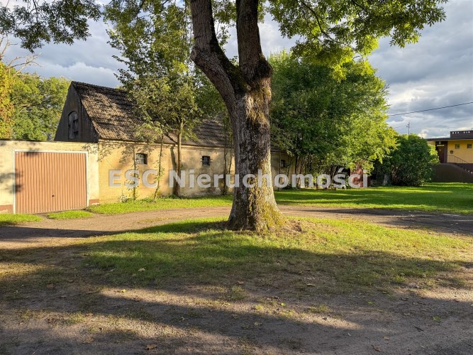Teren częściowo ogrodzony, z bramą wjazdową.