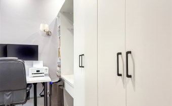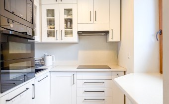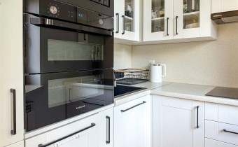 - Kuchnia (5 m²) – zabudowa na wymiar, AGD w komplecie: płyta indukcyjna, piekarnik, lodówka, mikrofalówka, zmywarka 40 cm – wszystko czeka