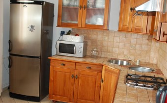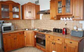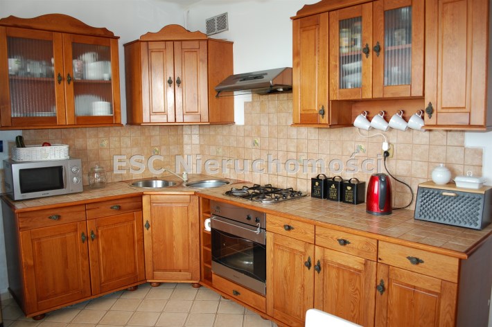 - kuchnia o powierzchni ok. 11,60m2,-jasna, z zabudową kuchenną. okno drewniane, na podłodze kafle, ściany gipsowane pokryte glazurą.