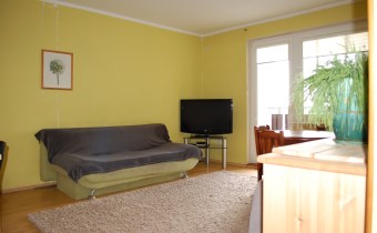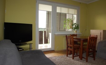 - salon o powierzchni ok. 18,7m2,z wyjściem na duży balkon, na podłodze panele,ściany gipsowane, okna PCV.
