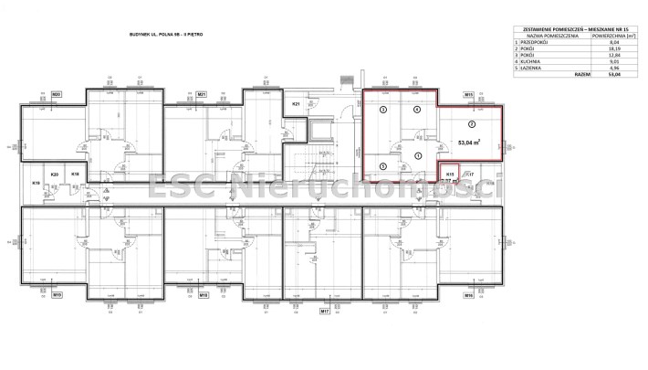 Powierzchnia lokalu mieszkalnego wynosi 53,04 m2, w skład którego wchodzi: