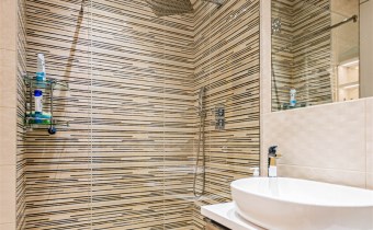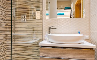 - ściany: w salonie z aneksem kuchennym i sypialni - gładzie gipsowe, malowane; w łazience - glazura