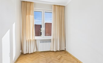Sypialnia o powierzchni 7,9 m2, parkiet drewniany (buk) cyklinowany i lakierowany, z możliwością aranżacji pod łóżko i szafę;