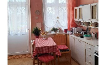 3.Kuchnia- 13,73 m2 okno pcv-balkonowe/balkon od strony podwórka/, ściany tynkowane-malowane, podłoga deska+wykładzina, bojler na ciepłą wodę, kuchenka gazowa;