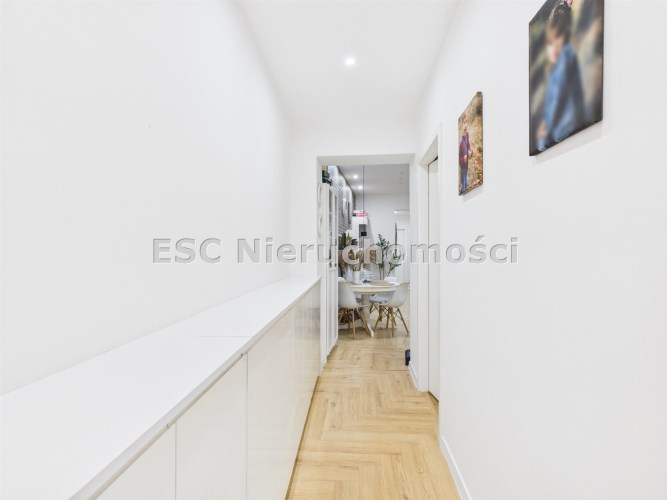 W całym mieszkaniu zastosowano ogrzewanie podłogowe, co zapewnia komfort cieplny przez cały rok.