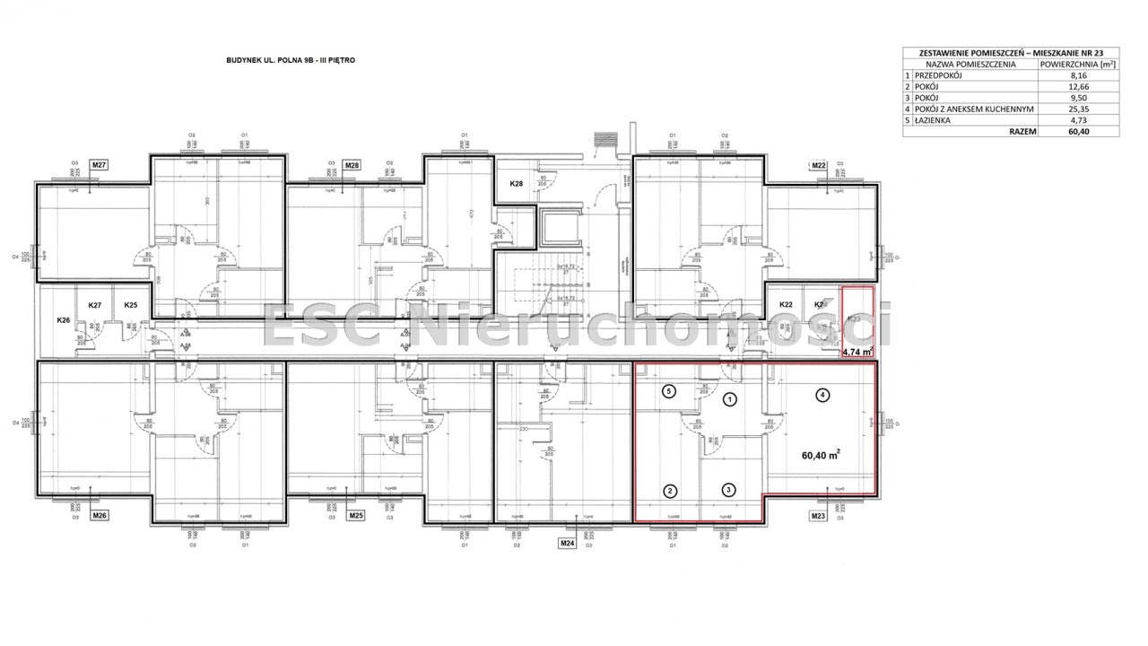 Powierzchnia lokalu mieszkalnego wynosi 60,40 m2, w skład którego wchodzi: