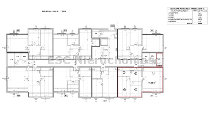 Powierzchnia lokalu mieszkalnego wynosi 60,68 m2, w skład którego wchodzi: