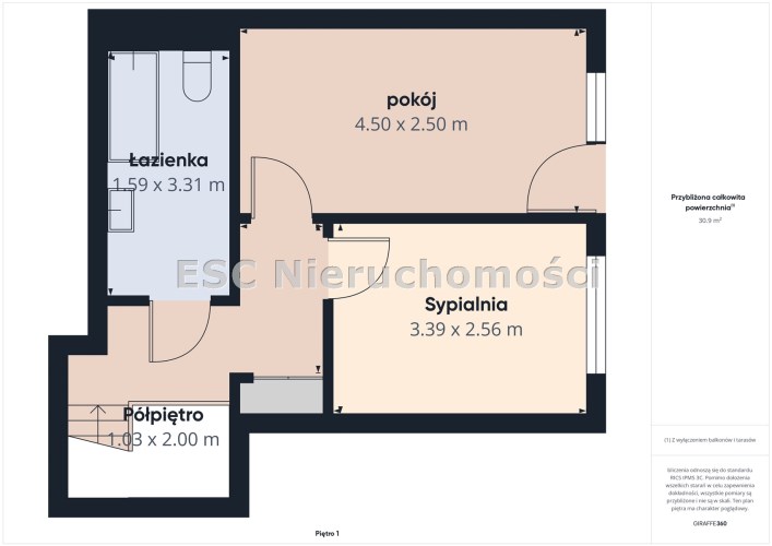 - pokój/ sypialnia o pow. 9 m2,