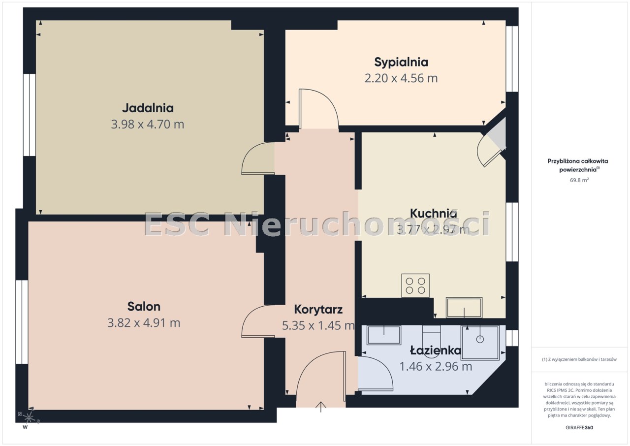 przestronnego salonu o pow. 18,6 m2
