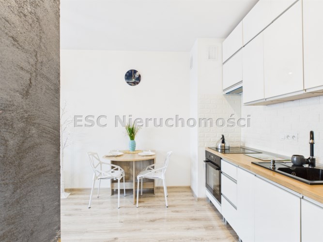 Całość urządzona w spójnym, nowoczesnym stylu i gotowa do zamieszkania bez dodatkowych nakładów finansowych. Łazienka została w pełni wyposażona i posiada prysznic, pralkę oraz suszarkę, co znacząco podnosi komfort użytkowania.