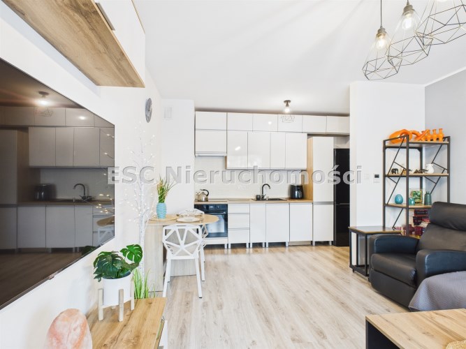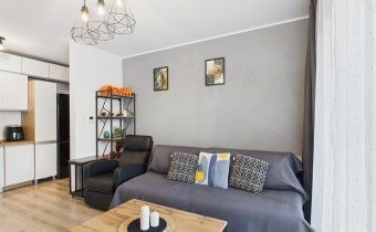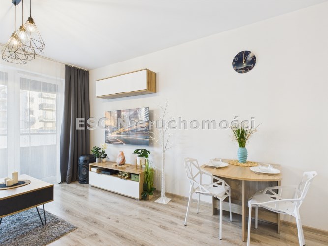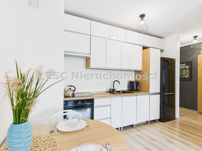Z przestronnego salonu prowadzi wyjście na balkon o szerokości całego salonu, stanowiący idealne miejsce do wypoczynku. Kuchnia została wykonana w nowoczesnej zabudowie i wyposażona w nowoczesny sprzęt AGD, zapewniający komfort codziennego użytkowania. Mieszkanie oferuje liczne, pojemne szafy, które gwarantują dużą ilość miejsca do przechowywania.