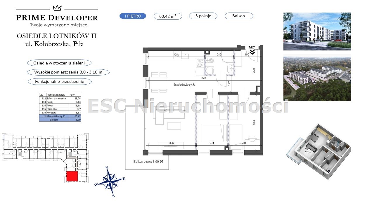 Mieszkanie z lokalizowane na os. Górnym przy ul. Kołobrzeskiej, w najbardziej zielonej części Piły, na wzniesieniu, z którego rozpościera się niepowtarzalny widok na panoramę miasta.