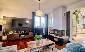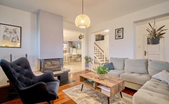 W salonie znajduje się kominek panoramiczny (3 szyby).