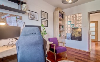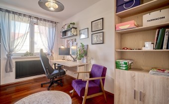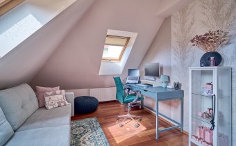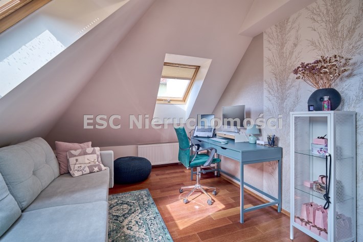 Na piętrze i w gabinecie zabudowane szafy (w cenie).