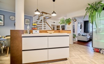 Ta dwupoziomowa nieruchomość o powierzchni 109,5 m2 składa się z 4 pokoi, kuchni, 2 łazienek, przedpokoju.