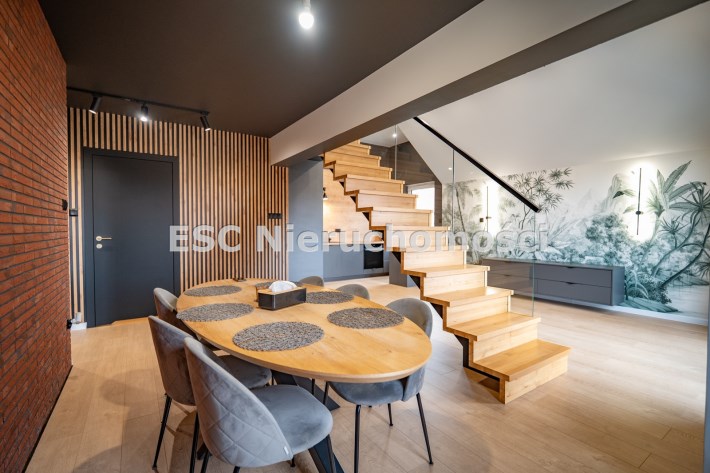 To mieszkanie to świetna alternatywa dla domu – łączy w sobie zalety dużej przestrzeni, nowoczesnej architektury i wygody mieszkania w mieście.