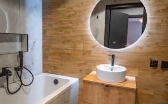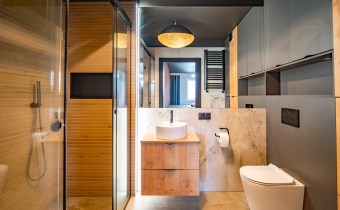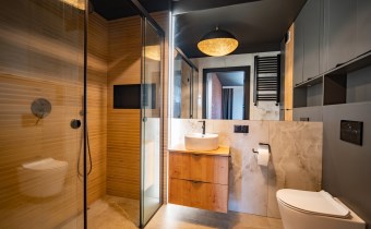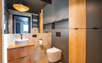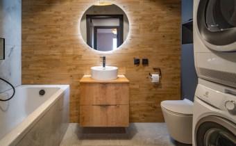 Nowoczesna łazienka z pełnym wyposażeniem.