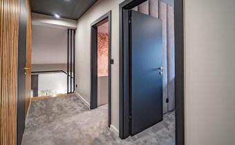 Antresola, na której znajdują się dwa dodatkowe pokoje oraz druga łazienka – doskonała przestrzeń dla dorastających dzieci