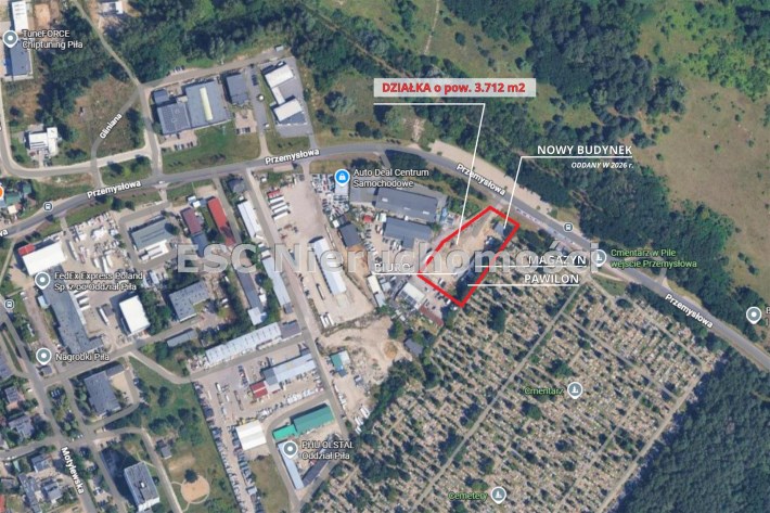 Nieruchomość obejmuje działkę o powierzchni 3712 m², co w realiach miejskich stanowi znaczący atut operacyjny.