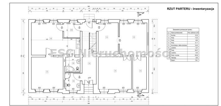 - powierzchnia mieszkalna (115,55 m2) składająca się z 5 pokoi, 3 kuchni, łazienki