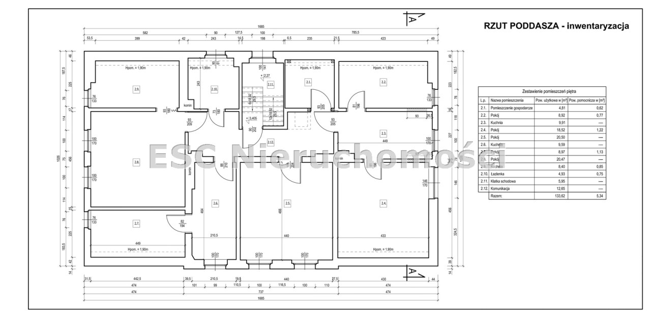 - pomieszczenie gospodarcze o pow. 4,81 m2 z wejścia na strych